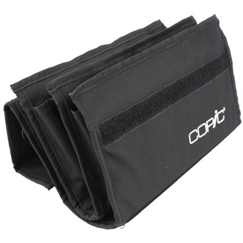 Keep your copic markers organized and portable with this sleek wallet. It features pockets for 72 copic markers, a secure velcro closure, and a convenient adjustable and removable shoulder strap. It's made of durable black canvas. When closed the wallet measures 6 by 10-1/2 by 4-inch. This package contains one black marker wallet. Copic markers not included. Imported.