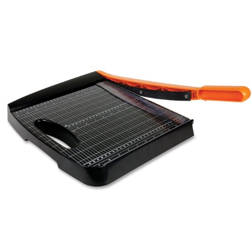 FSK01005452 Bypass trimmer features self-sharpening blades so no replacement blades are needed. Blade cuts up to 10 sheets of paper at a time. Cutting arm lock is built-in for safe transporting and storage. Use precision printed scale and grid on base for easy alignment. Trimmer also features a paper clamp, smudge guard and anti-skid rubber feet for stability. Trimmer base is made from 100 percent recycled post-consumer resin. -Product Type: Trimmer. -Country of Origin: China. -Cutting Length: 12''. -Cutting Support: 10 Sheet. -Recycled: Yes. -Recycled Content: 100pct. -Post-consumer-wastepct