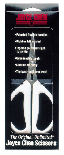 Joyce Chen opened her first restaurant in Cambridge, Massachusetts in 1958. She found that the selection and quality of Chinese cookware in America didn't live up to her high standards… so she developed her own. Today, Joyce Chen Products sources from all over the Pacific Rim to bring the best of Asia to you. This original "Unlimited" scissor is used and recommended by professional chefs and food stylists. It is dishwasher safe, with soft, flexible white handles and powerful precision cutting. Its ingenious design is for right or left-handed use. Perfect for use in the kitchen, in craft